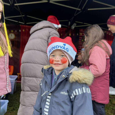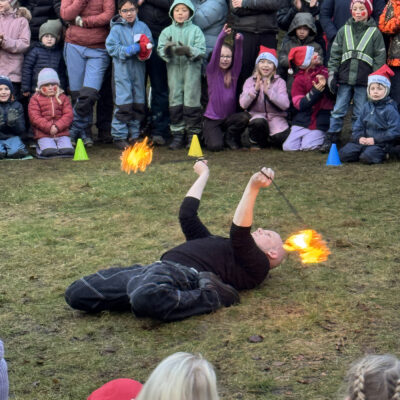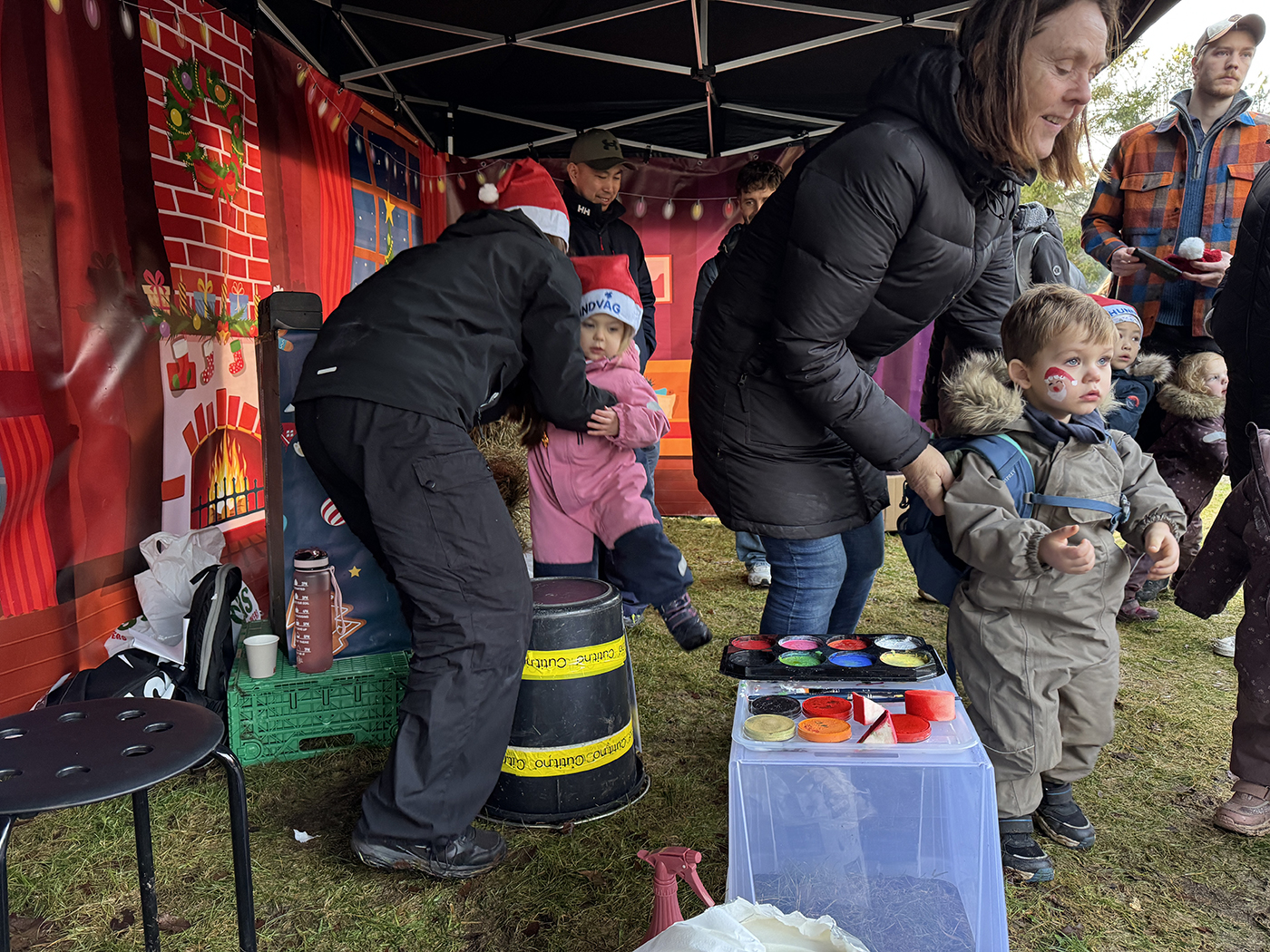 Innhold: Bokstavjakt, nissejakt, sponsorjakt, bingo med Ulrika, små leker med to like, kaste ring, julepose, ansiktsmaling, kjente figurer og flammeshow med Henning.